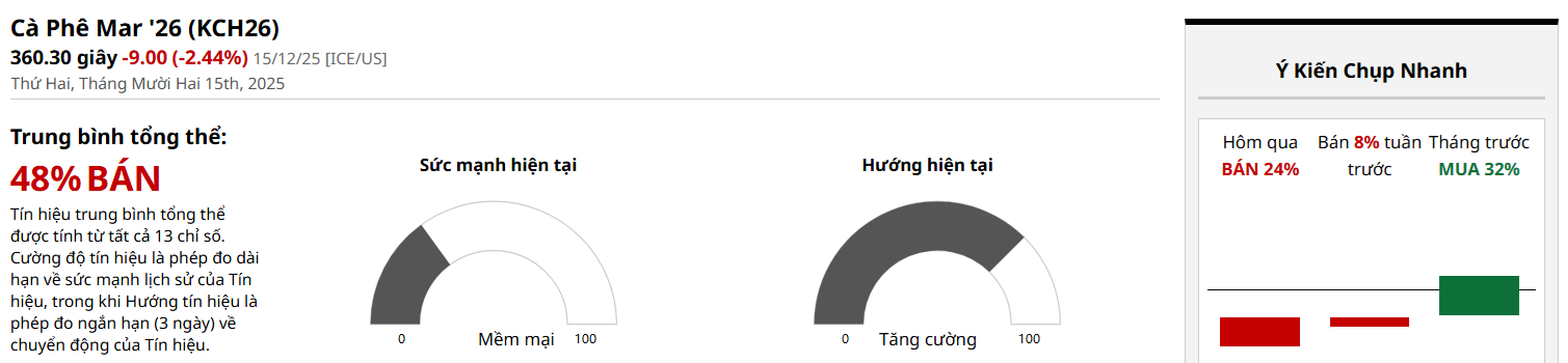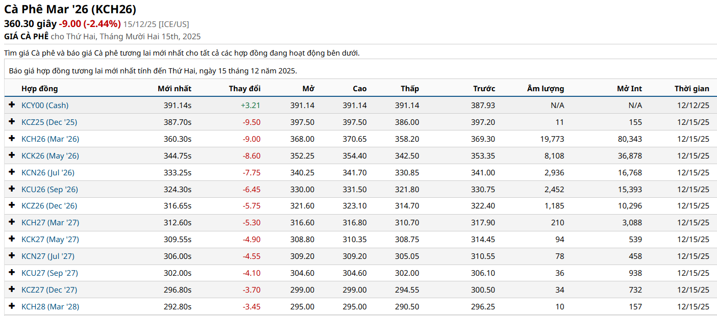 Phân tích giá cà phê ngày 16/12/2025
