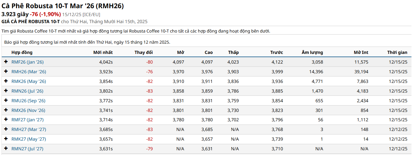 • 📉 Giá giảm mạnh: Arabica tháng 3 giảm 2,44%, xuống mức thấp nhất 3 tuần; Robusta tháng 1 giảm 1,94%, chạm đáy 4 tháng.